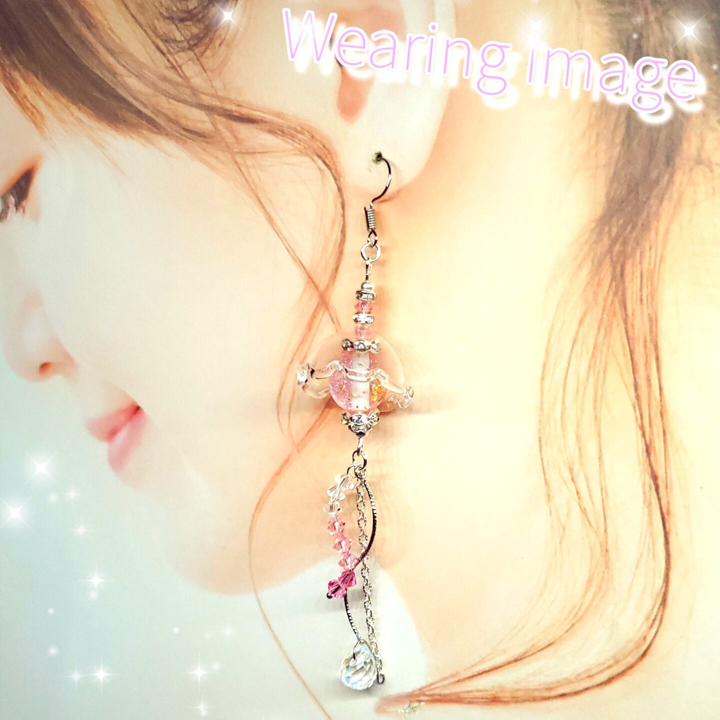 ꫛꫀꪝ✨数量限定❗液体ガラスドーム『K』 スワロフスキー クラゲピアス ピンク2