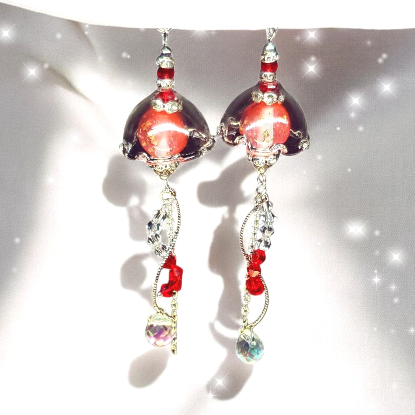 ꫛꫀꪝ✨数量限定❗液体ガラスドーム『K』 スワロフスキー クラゲピアス レッド