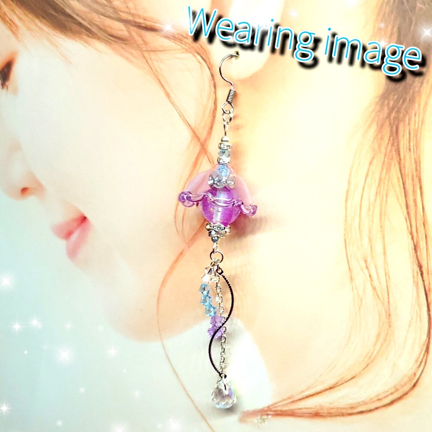 ꫛꫀꪝ✨数量限定❗液体ガラスドーム『K』 スワロフスキー クラゲピアス パープル&ブルー