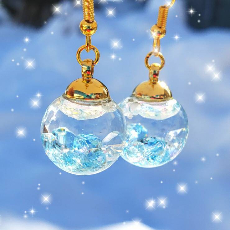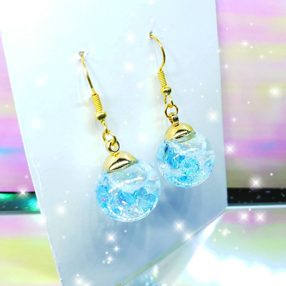 液体ガラスドーム スワロフスキー スノードーム ピアス しゃぼん玉
