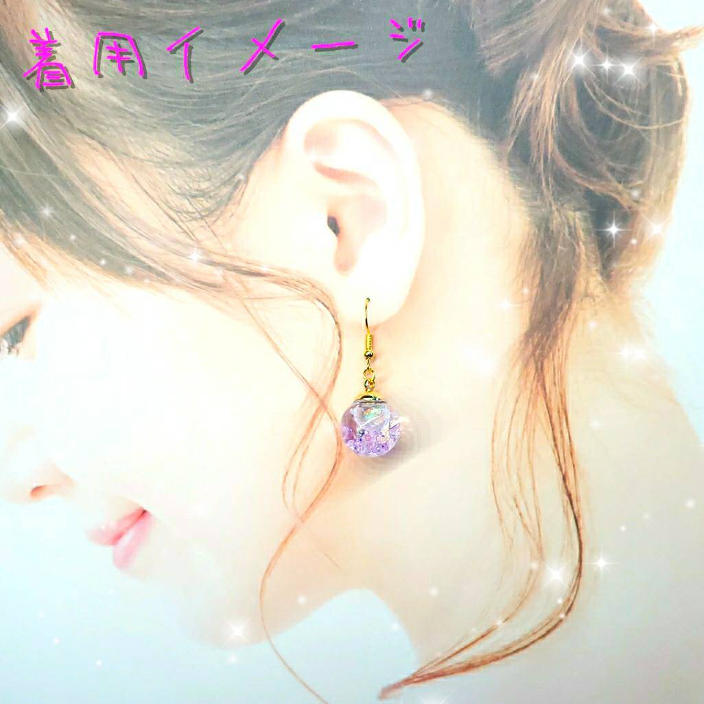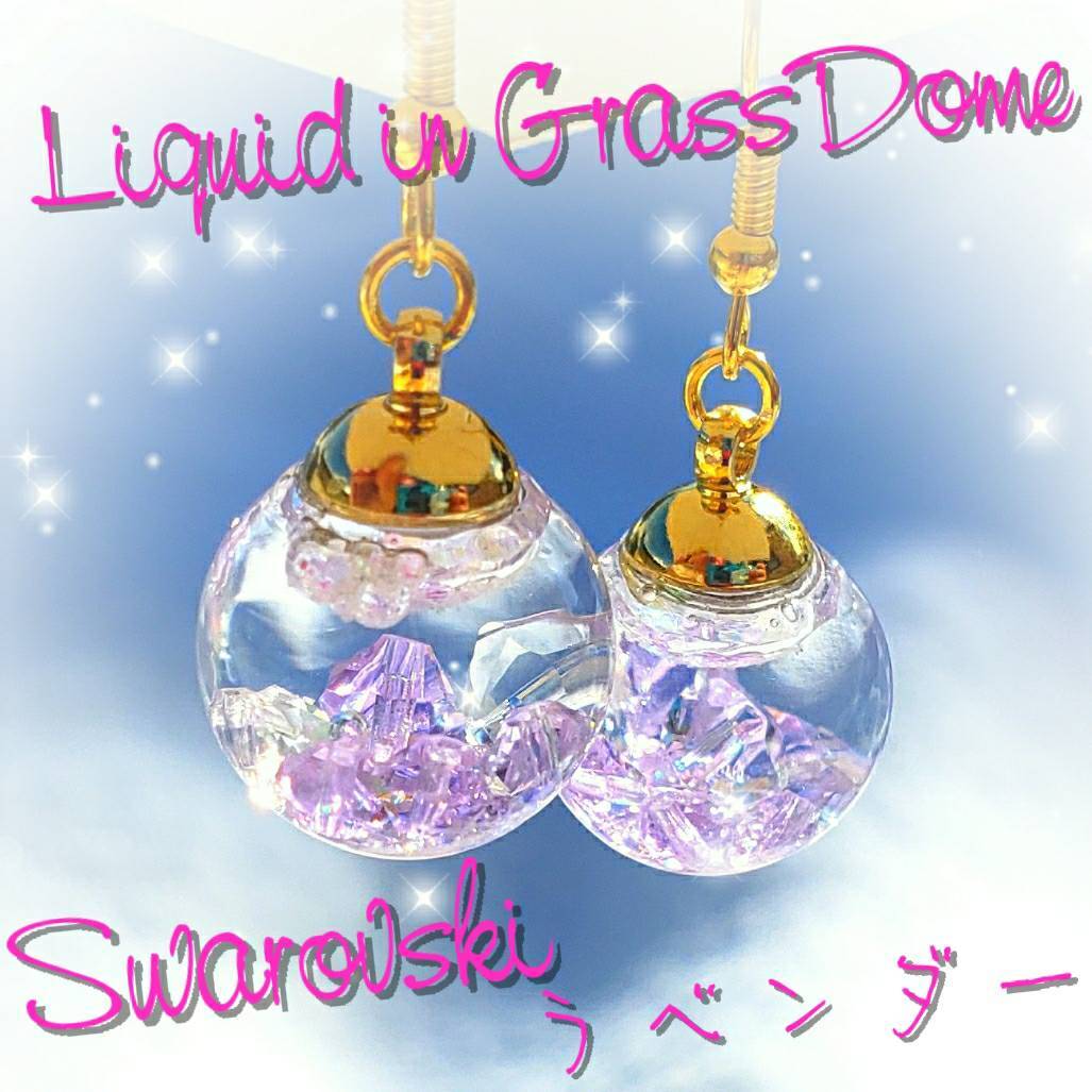 液体ガラスドーム スワロフスキー スノードーム ピアス ラベンダー