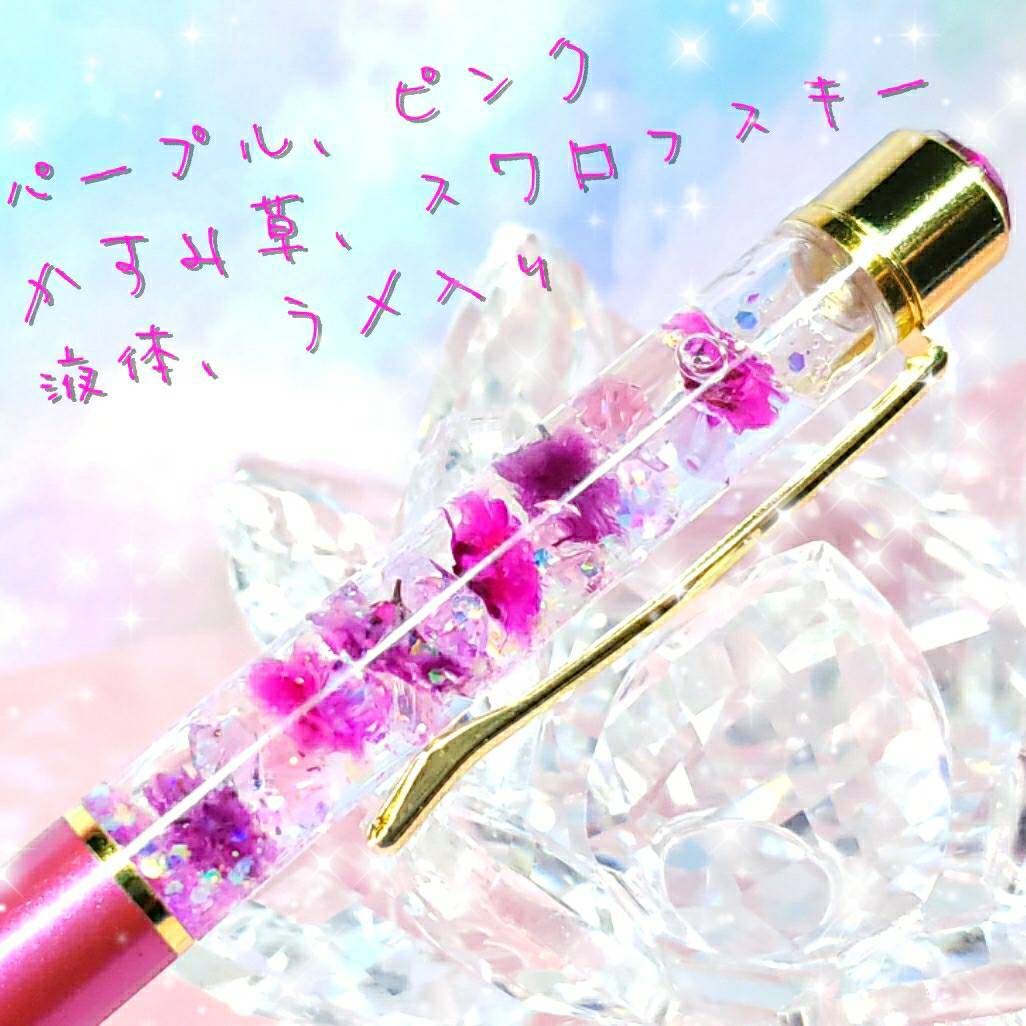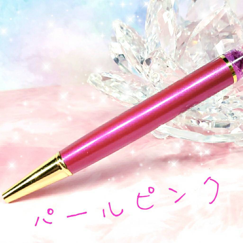 ハンドメイド 液体ガラスドーム スワロフスキー フラワー 液体ボールペン ピンク