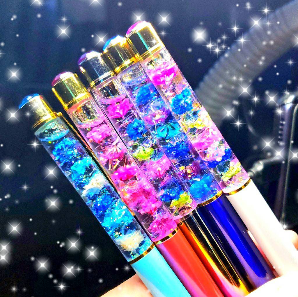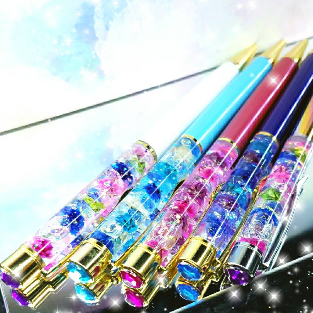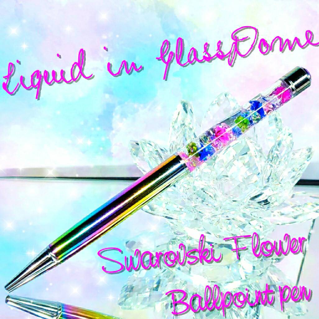 ハンドメイド 液体ガラスドーム スワロフスキー フラワー 液体ボールペン レインボー