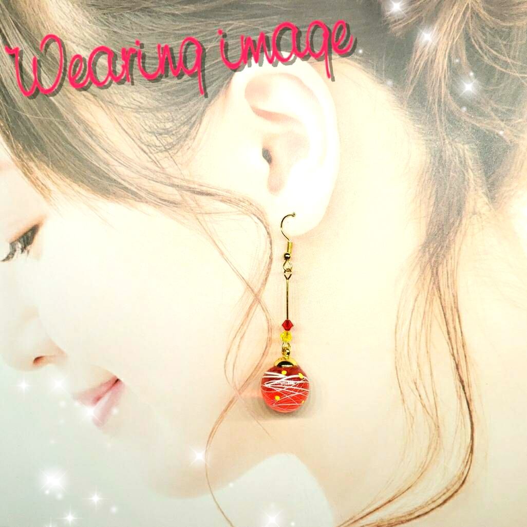 ꫛꫀꪝ✨数量限定❣ 2024♥️液体ガラスドーム 手描きヨーヨーピアス レッド