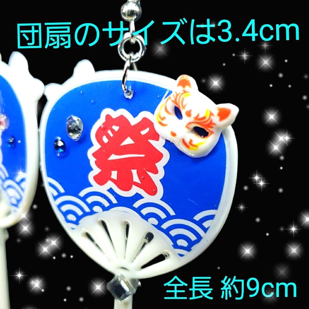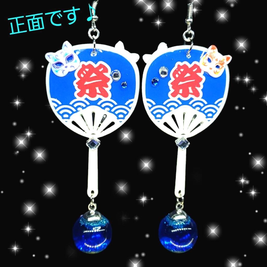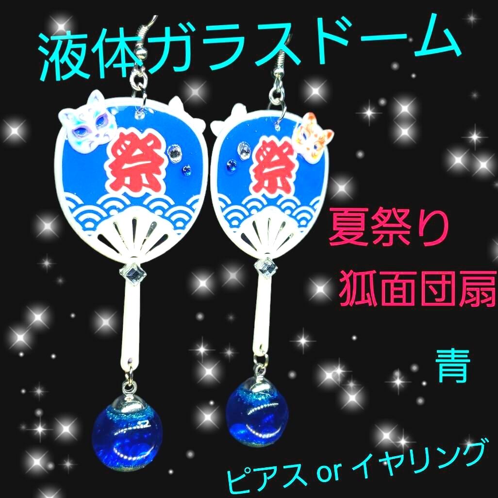 ꫛꫀꪝ✨数量限定❗液体ガラスドーム 夏祭り 狐面 団扇 ピアス左右 青