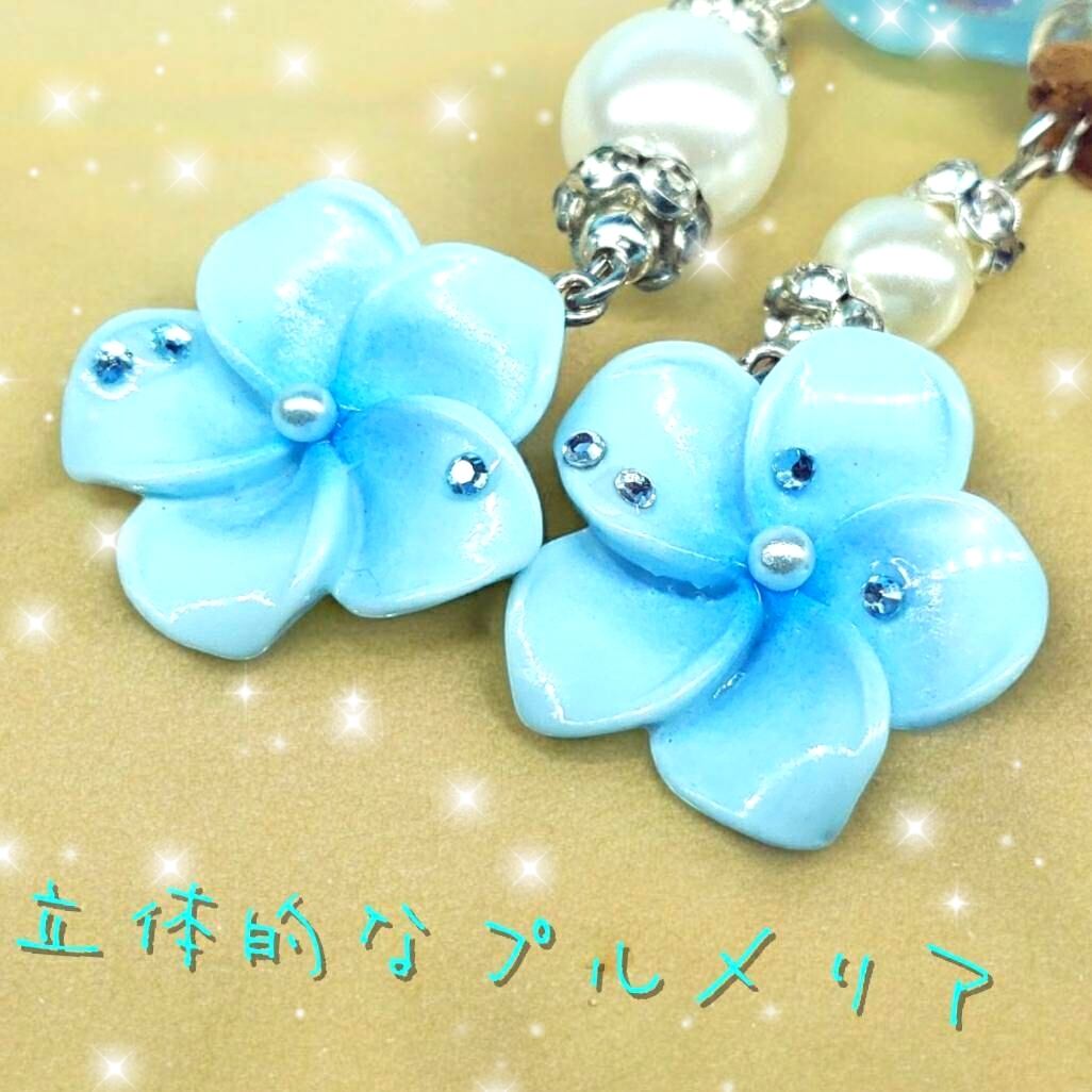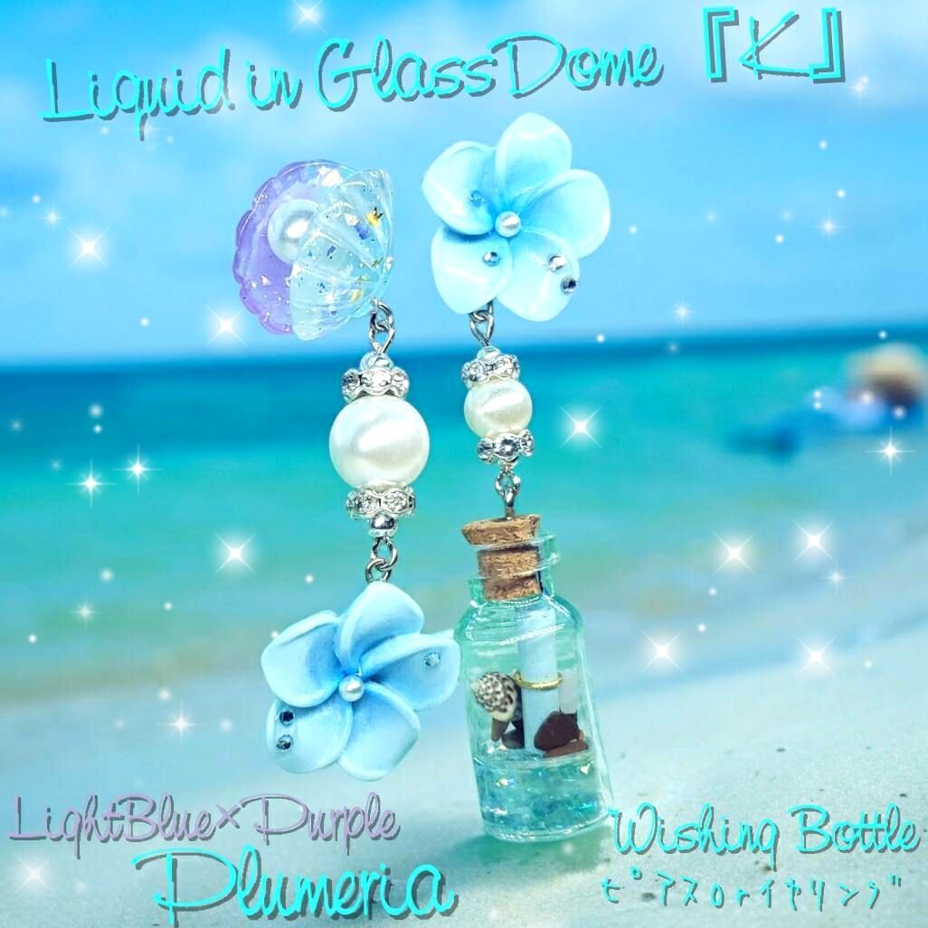 ꫛꫀꪝ✨1セット限定❗液体ガラスドーム プルメリア 幸運ボトル ピアス ブルー