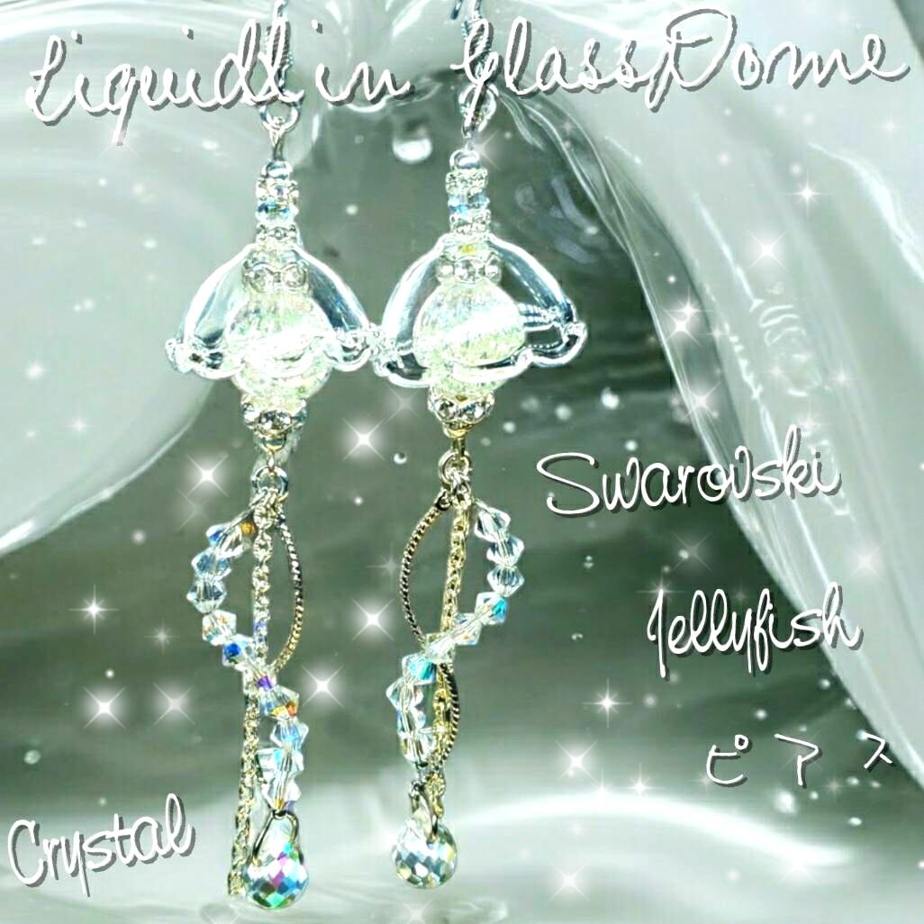 ꫛꫀꪝ✨1セット 液体ガラスドーム『K』 スワロフスキー クラゲピアス クリスタル