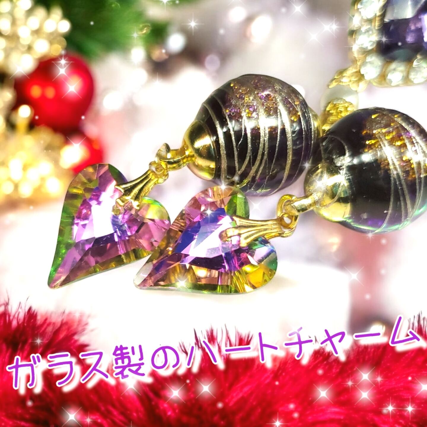 紫 赤 黒 ハートピアス 結婚式 デート プレゼント 贈り物 ハンドメイドピアス #ガラスドームピアス #KDX #ハートピアス 冬ピアス 夢かわ 冬アクセサリー 手作りピアス クリスマスプレゼント オーロラ サンタ ギャル
