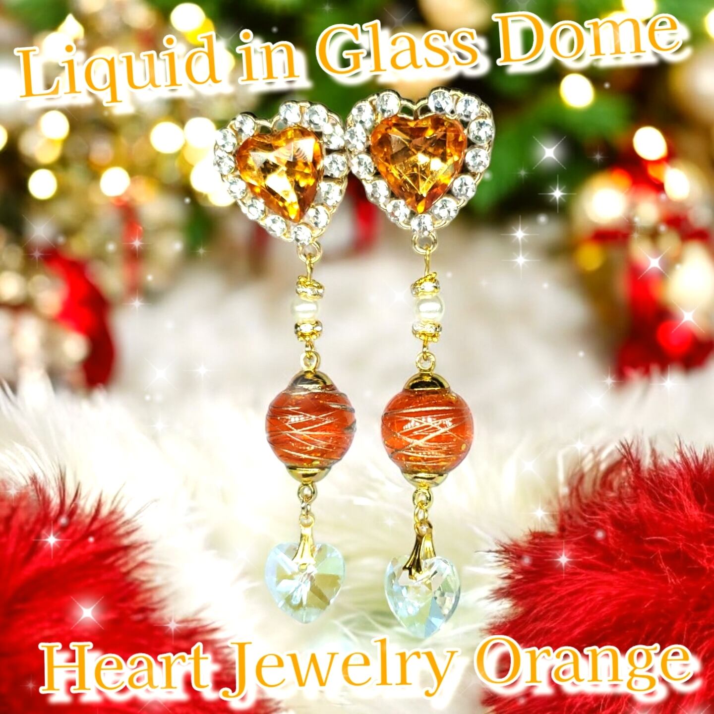 ꫛꫀꪝ♥️1セット限定❗液体ガラスドーム ハートジュエリー ピアス オレンジ