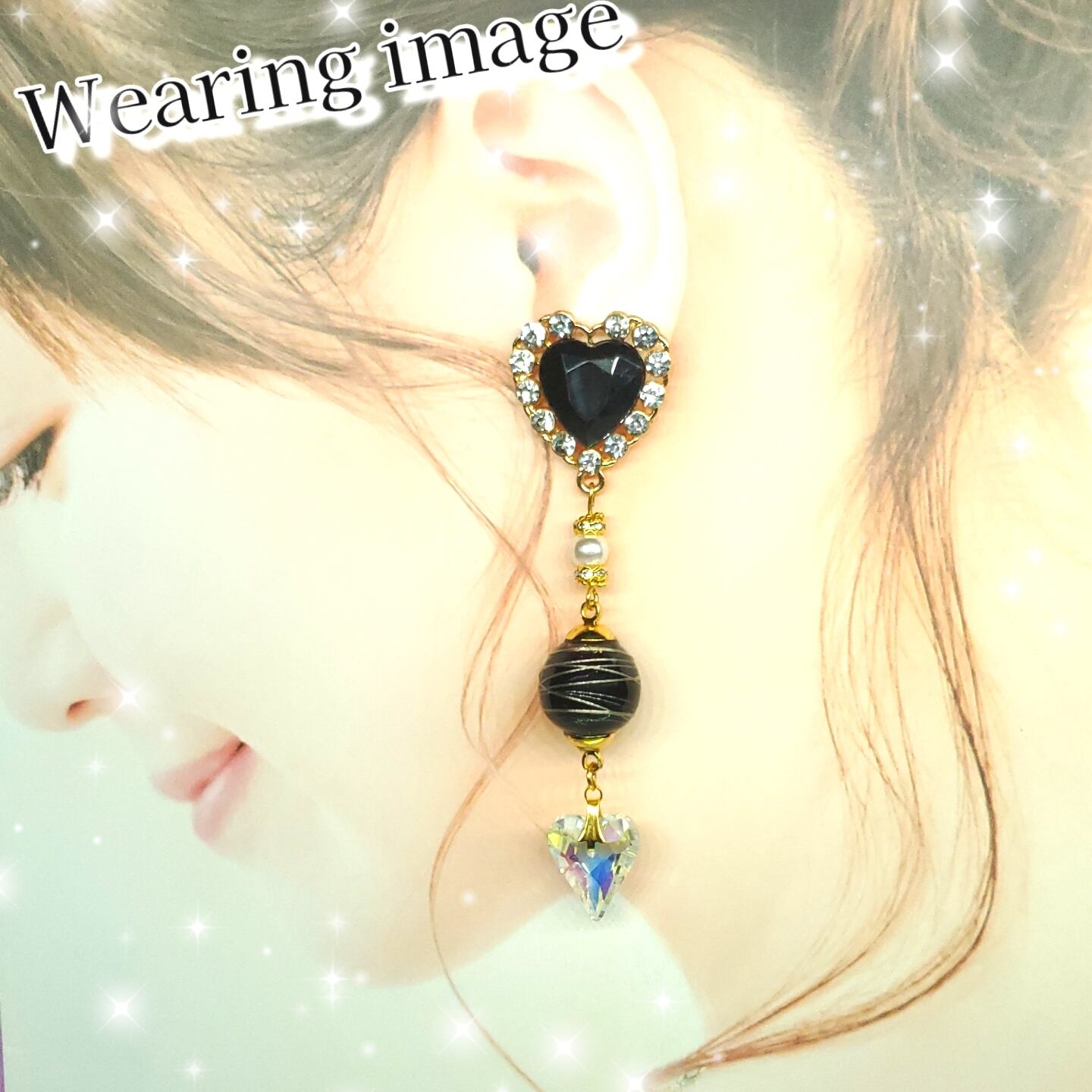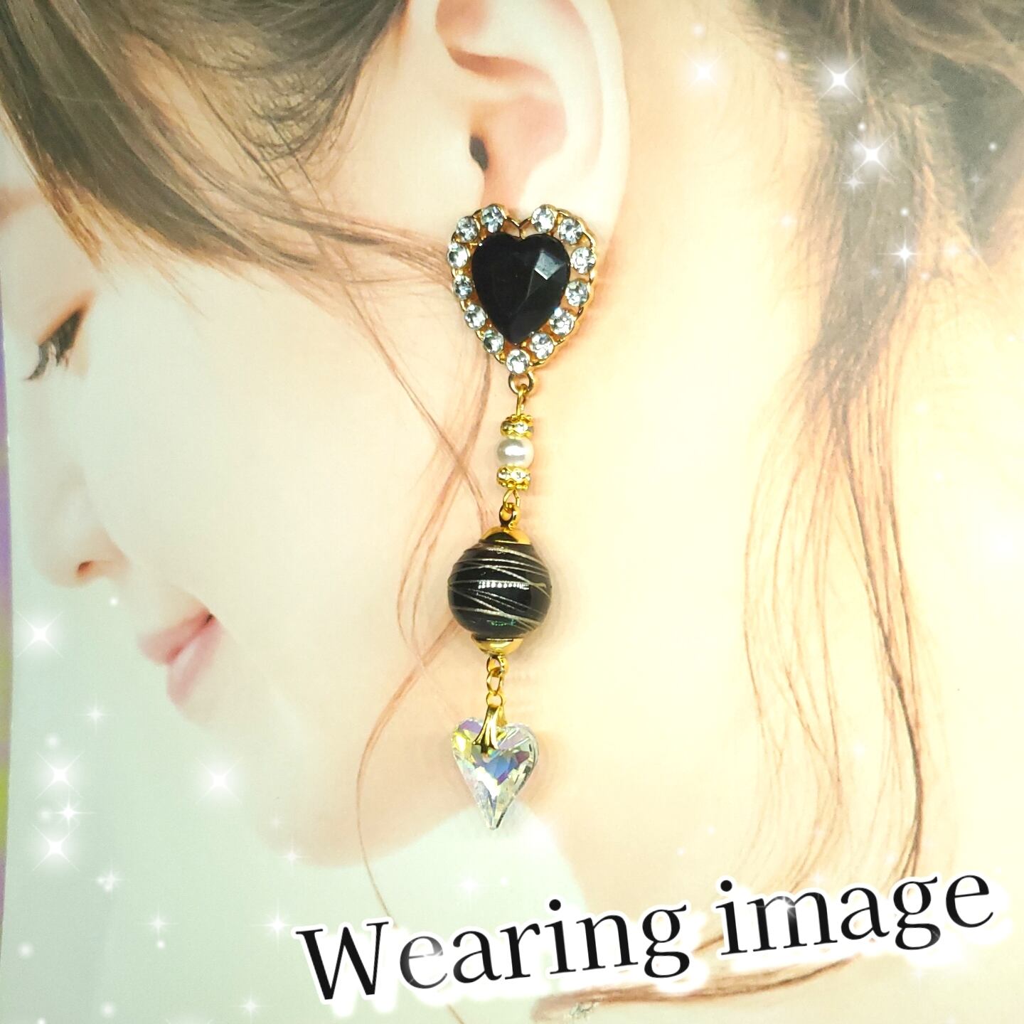 ꫛꫀꪝ♥️1セット限定❗液体ガラスドーム ハートジュエリー ピアス ブラック