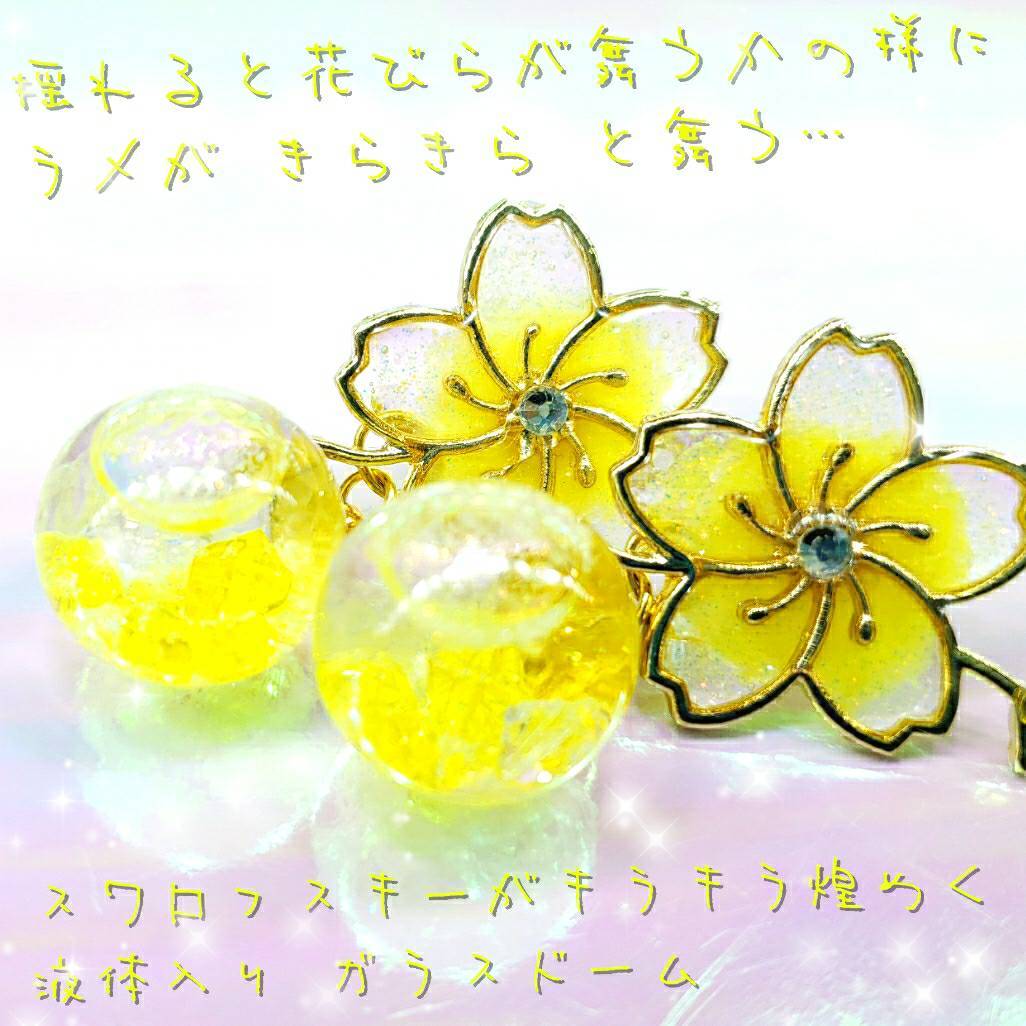 数量限定❣液体ガラスドーム スワロフスキー 桜ピアス ショート きいろ