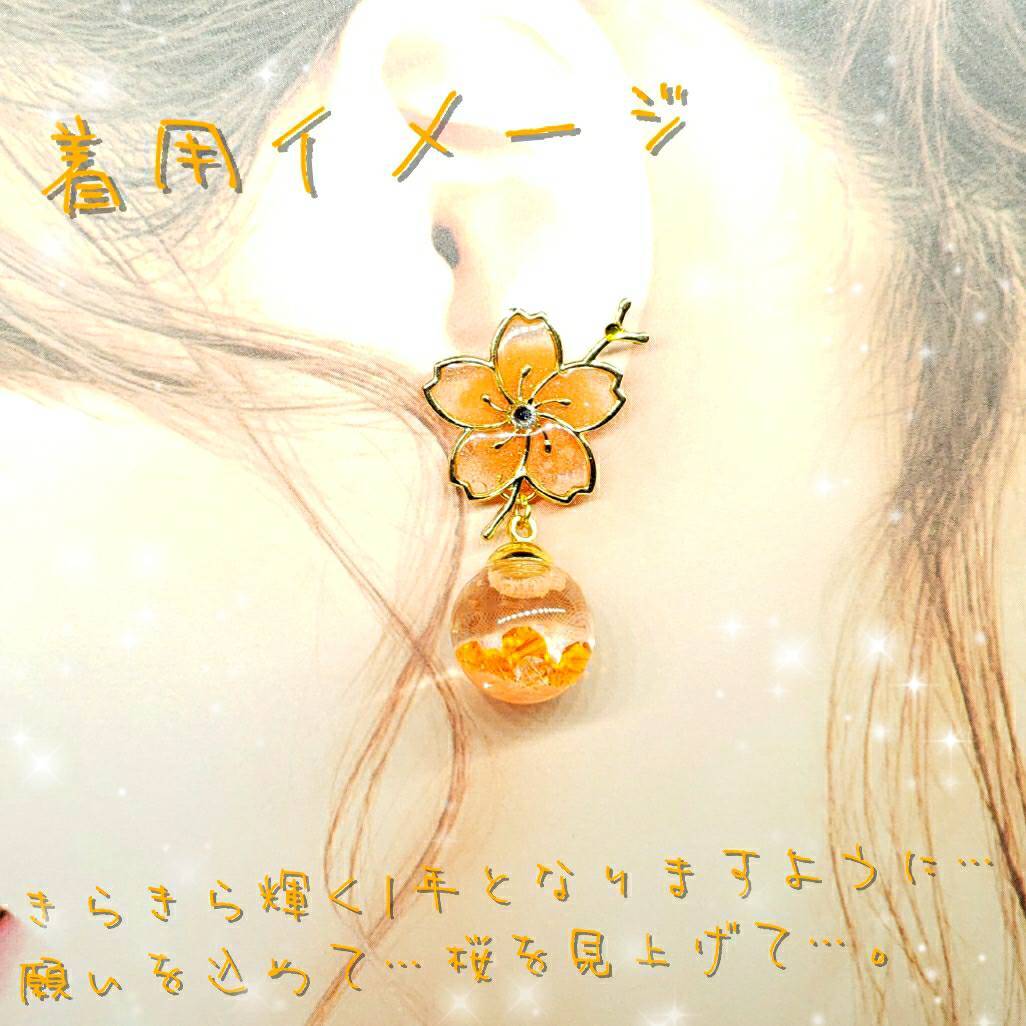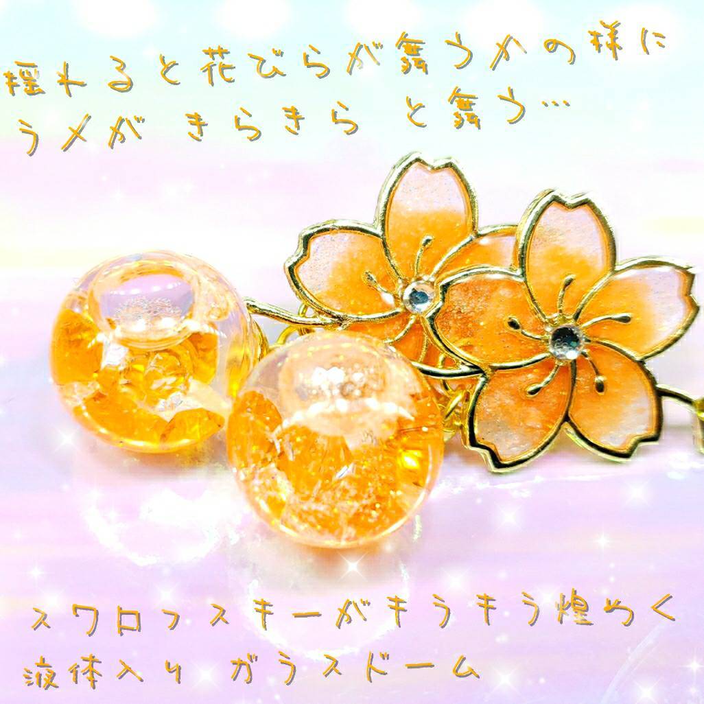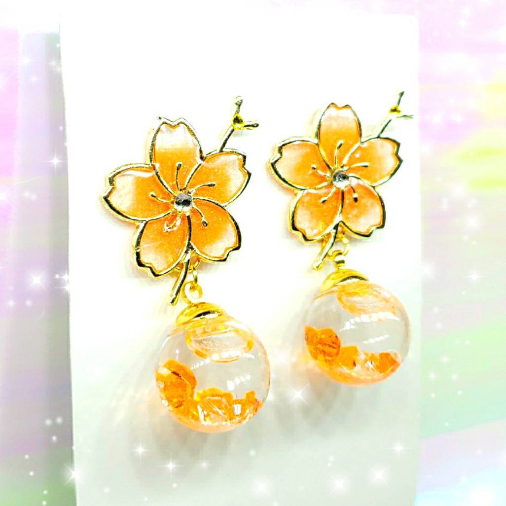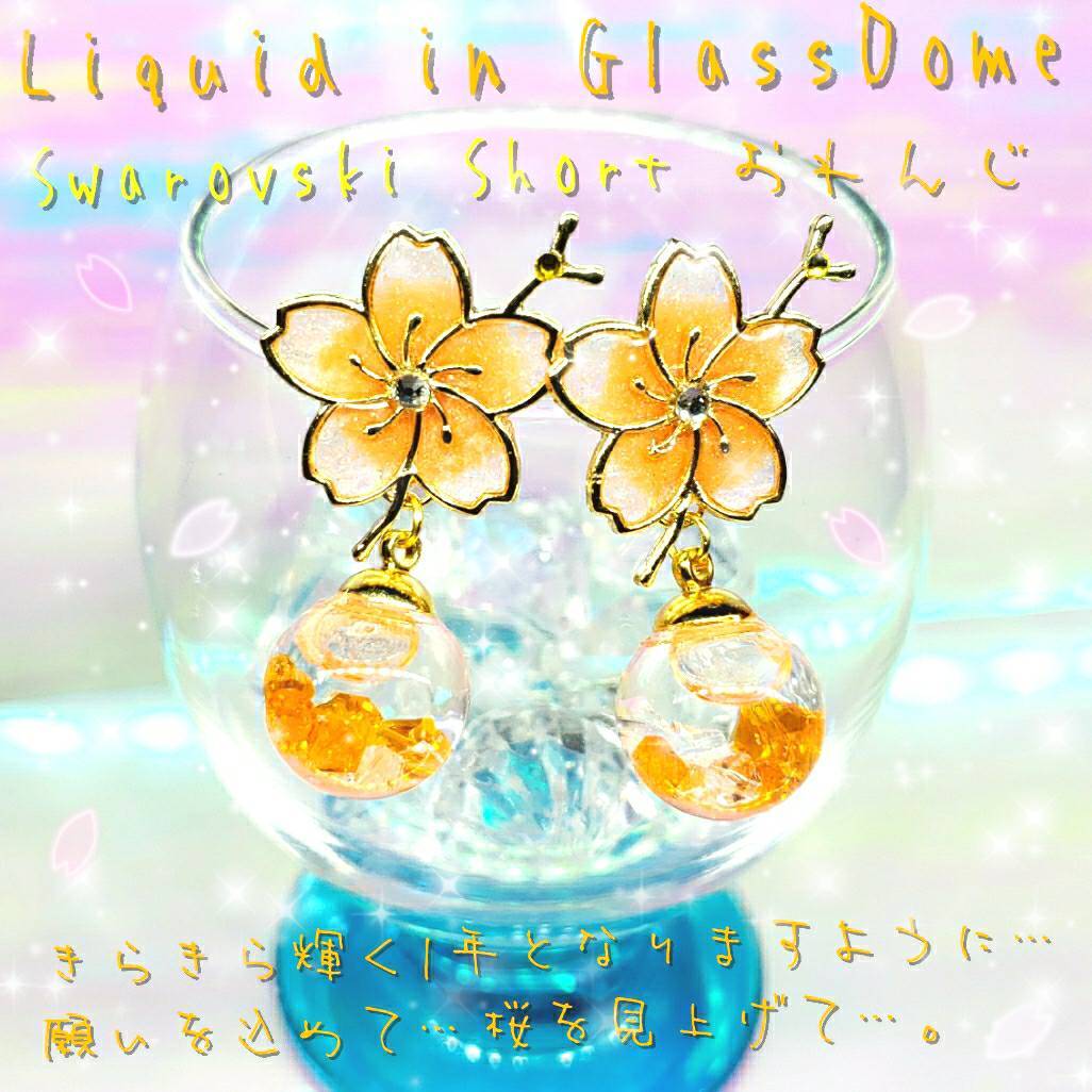 数量限定❣液体ガラスドーム スワロフスキー 桜ピアス ショート おれんじ